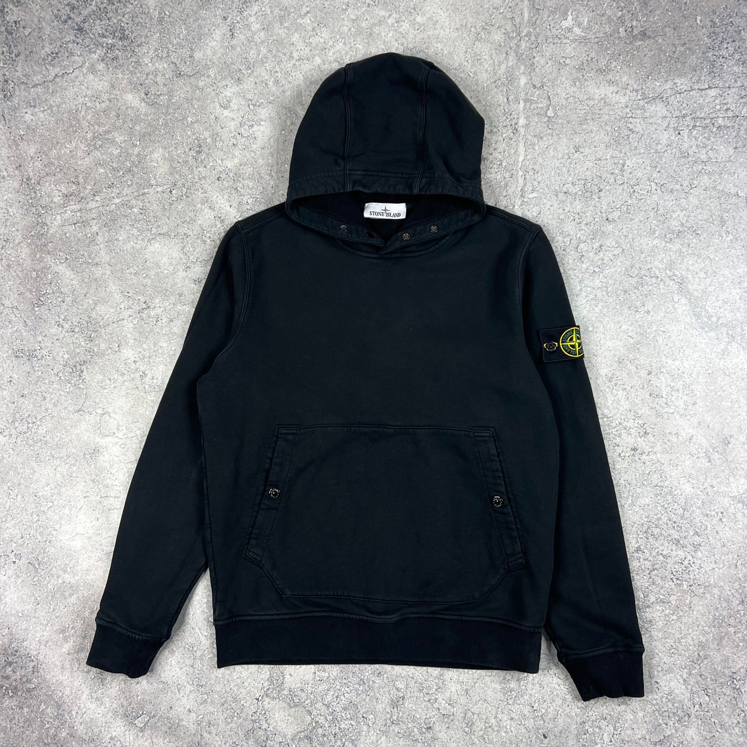 Stone Island Black Pullover Hoodie Medium 21.75”
