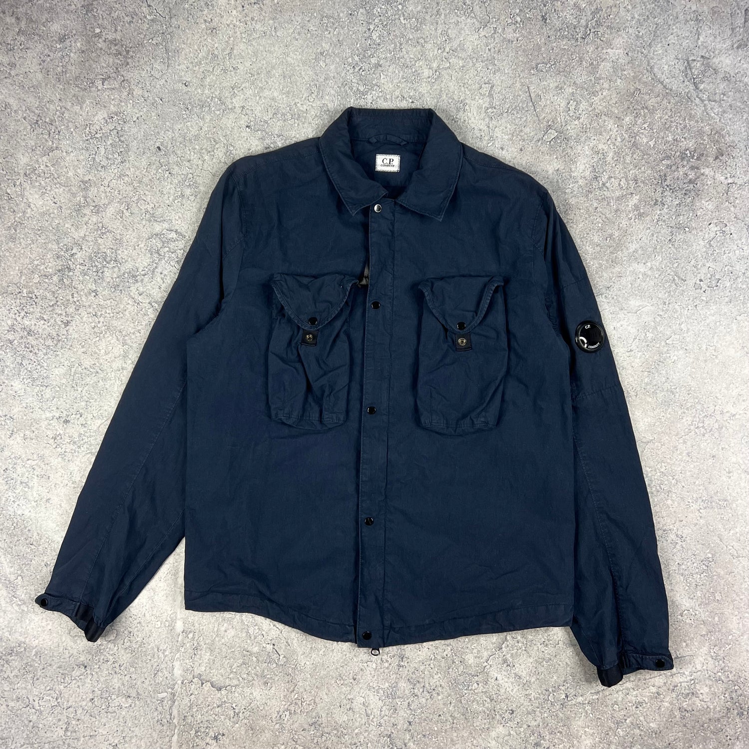 CP Company Navy 50 Fili Lens Overshirt Medium 21.75”