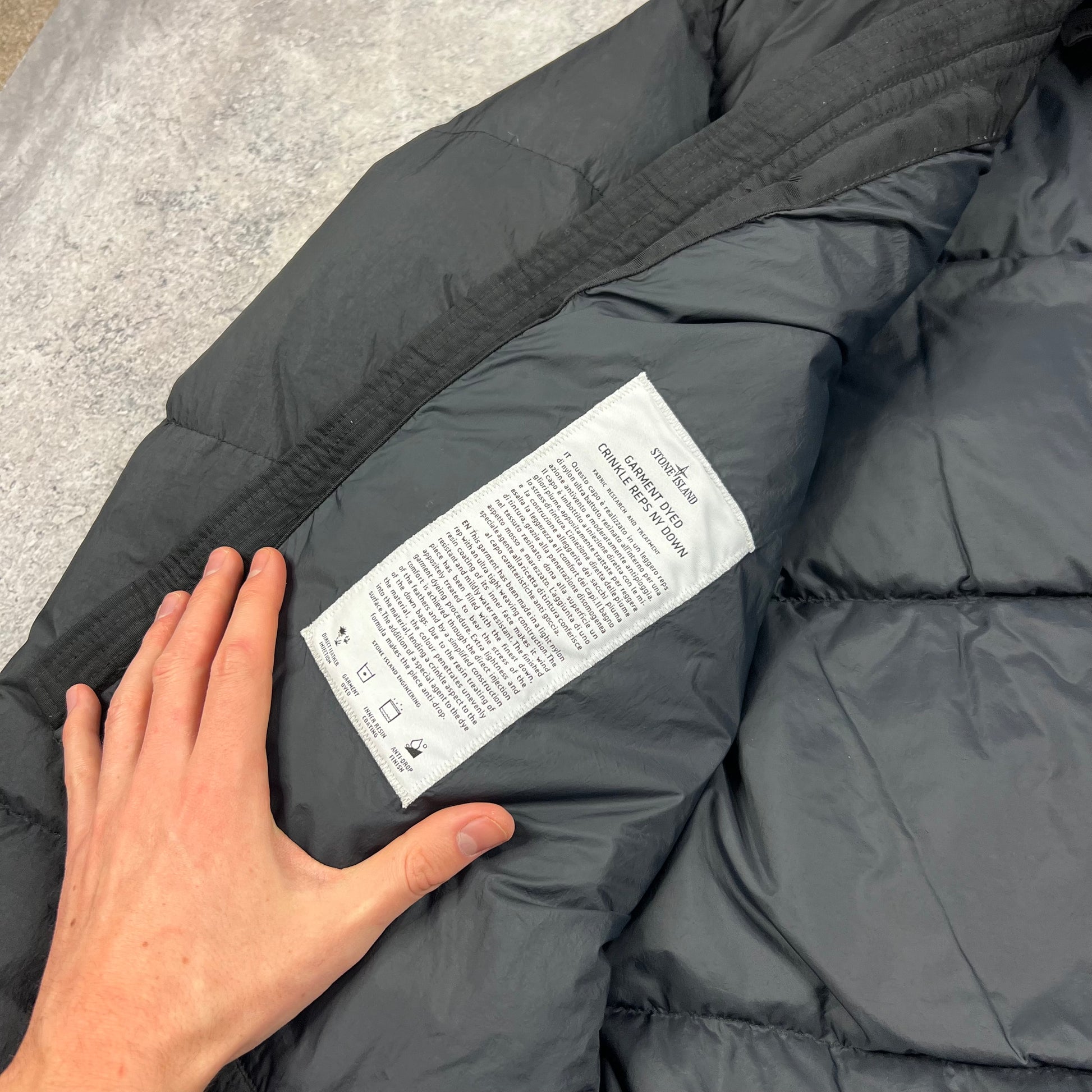 Stone Island Black Crinkle Reps Down Jacket Medium 22.5”