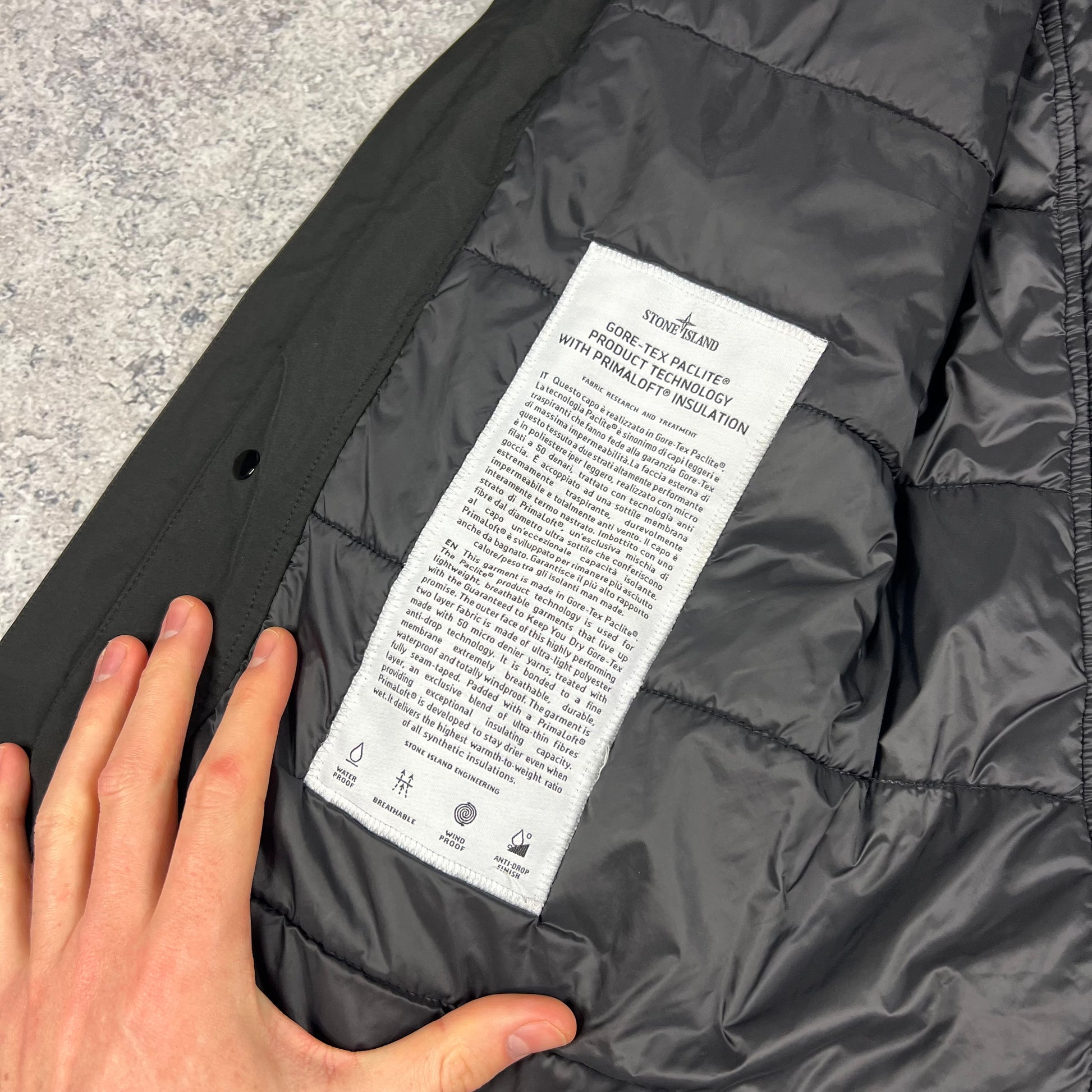 Stone Island Black Goretex Primaloft Mac Jacket Medium 22”