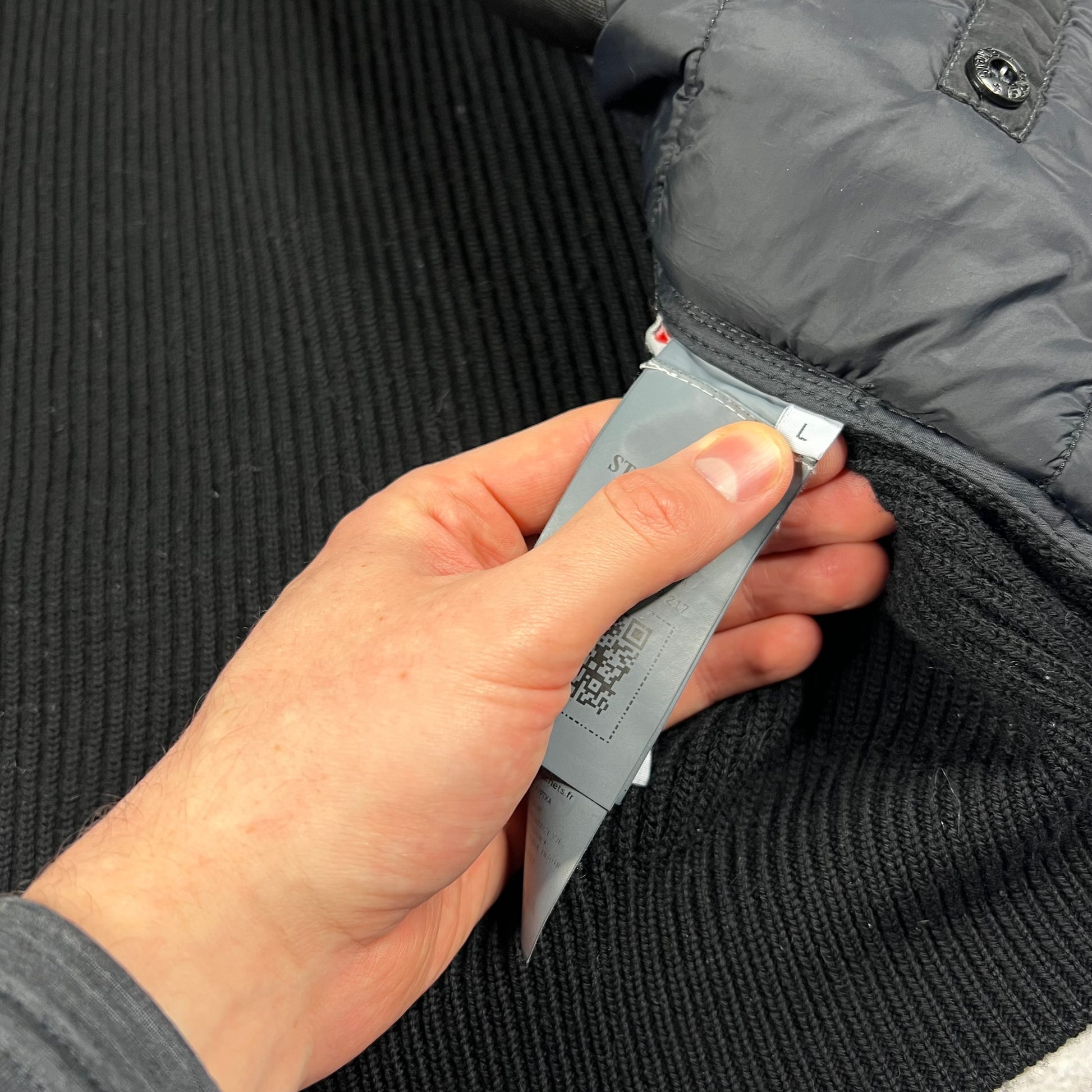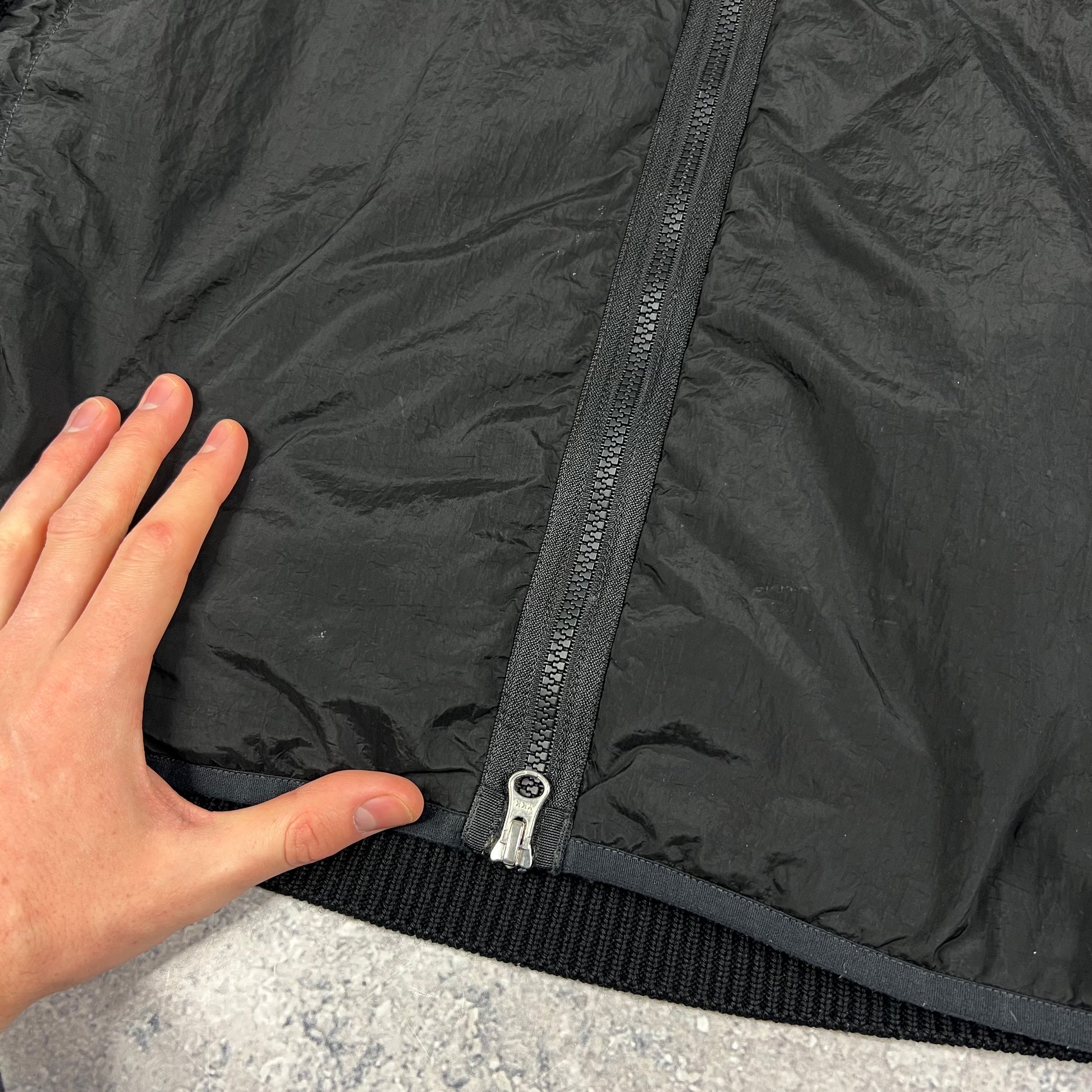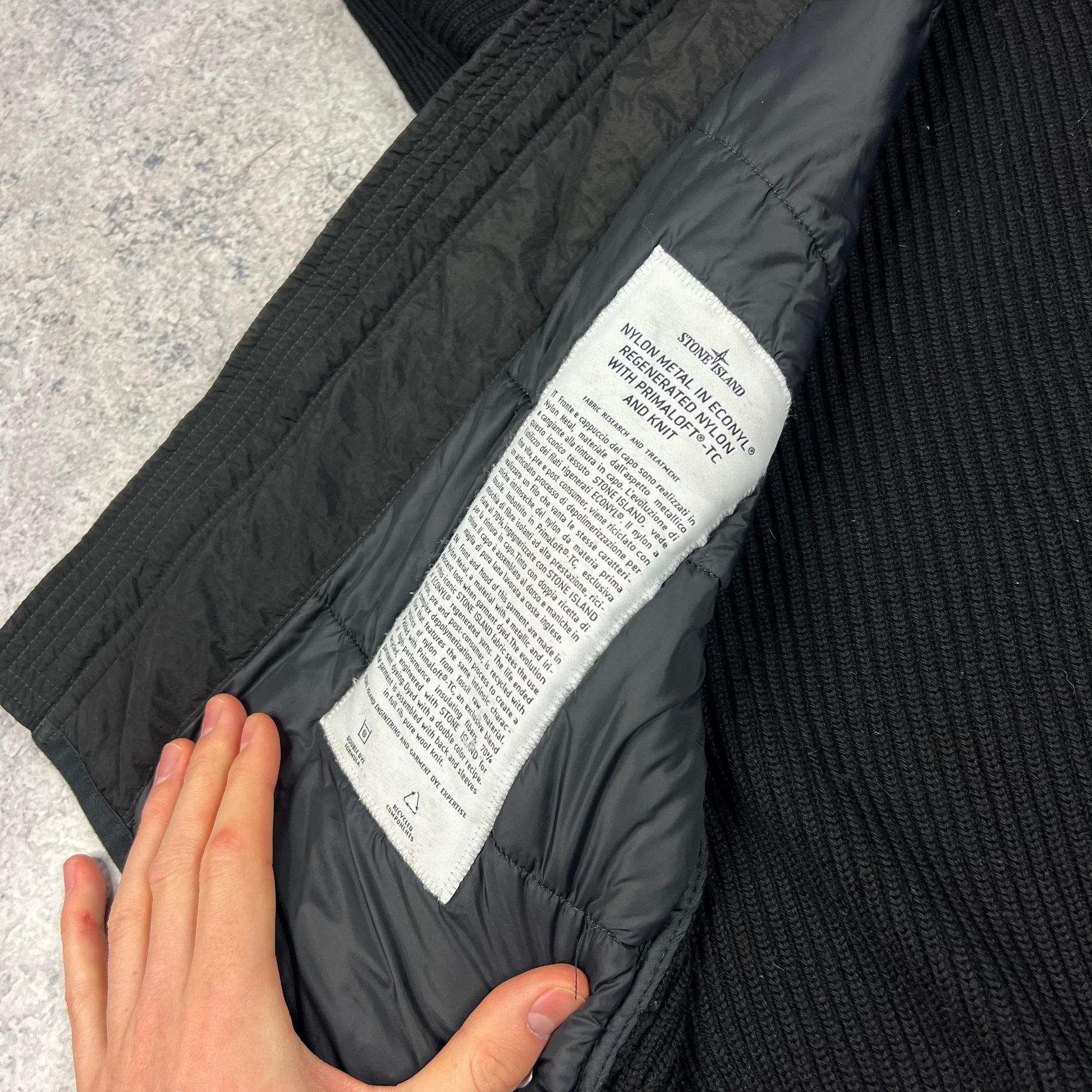 Stone Island Black Nylon Metal Primaloft Hooded Knit Jacket Large 23”