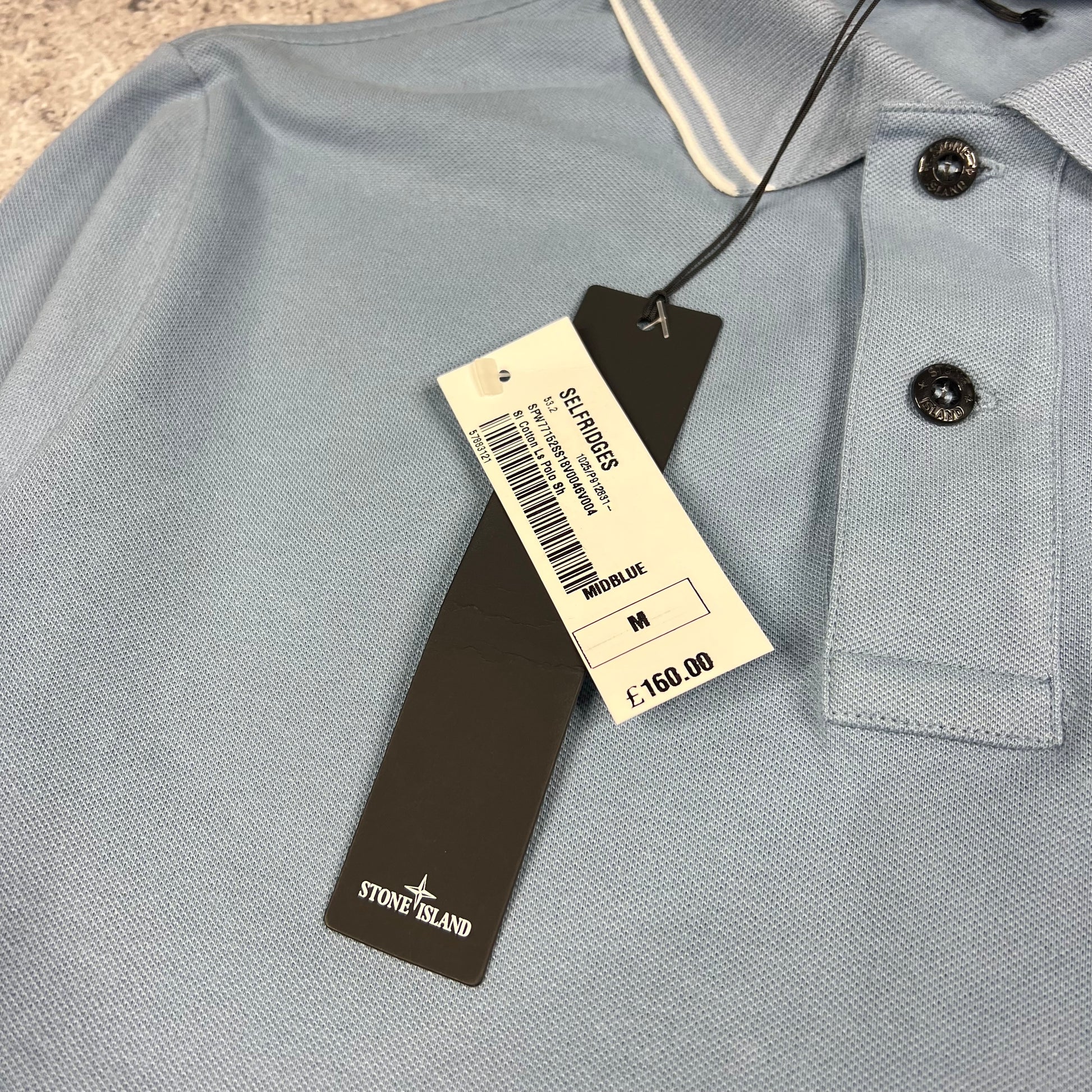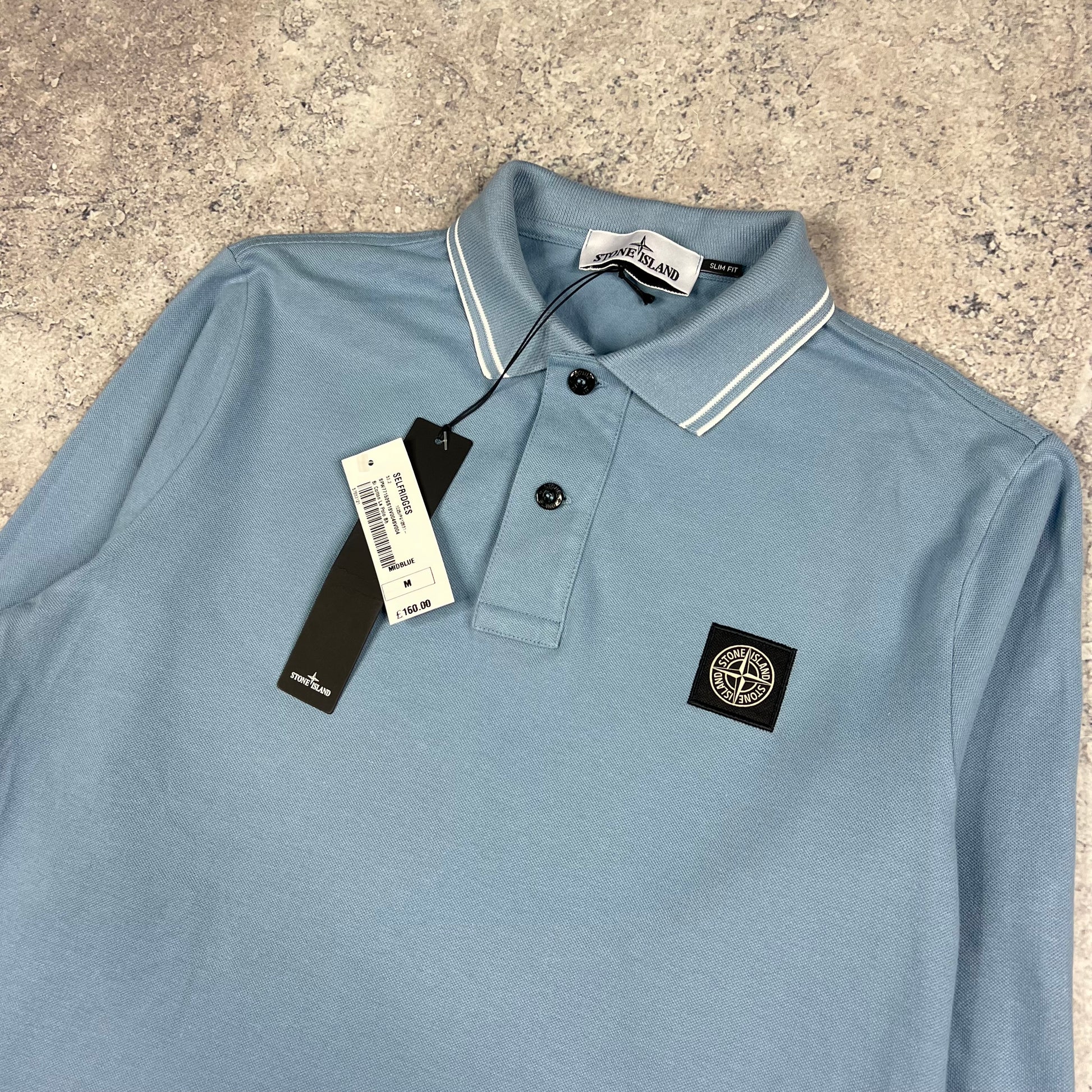 Stone Island Blue Long Sleeve Polo Shirt Medium 20” BNWT
