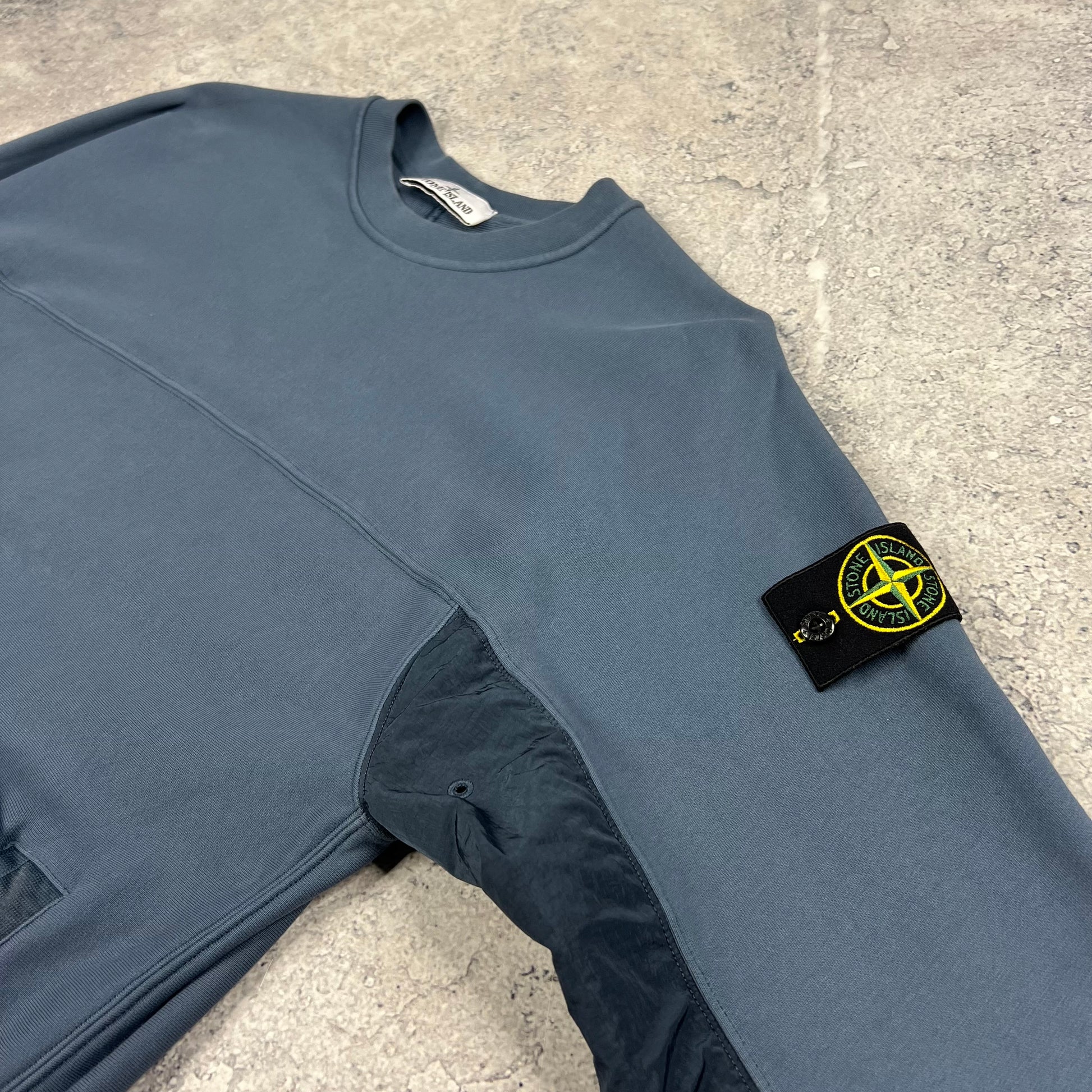 Stone Island Blue Nylon Metal Primaloft Sweatshirt Medium 21”