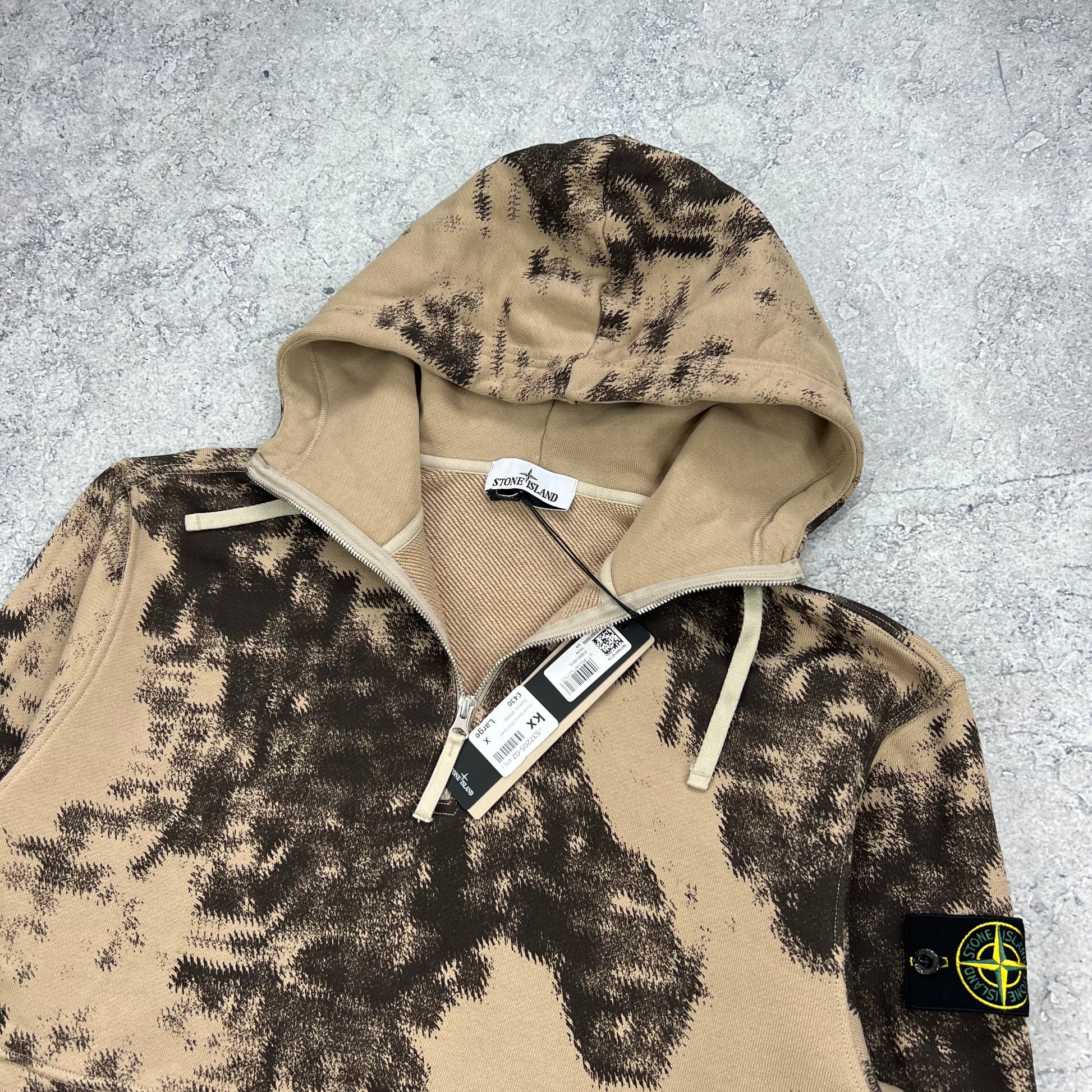 Stone Island Earth Camo Half Zip Hoodie XL 25” BNWT