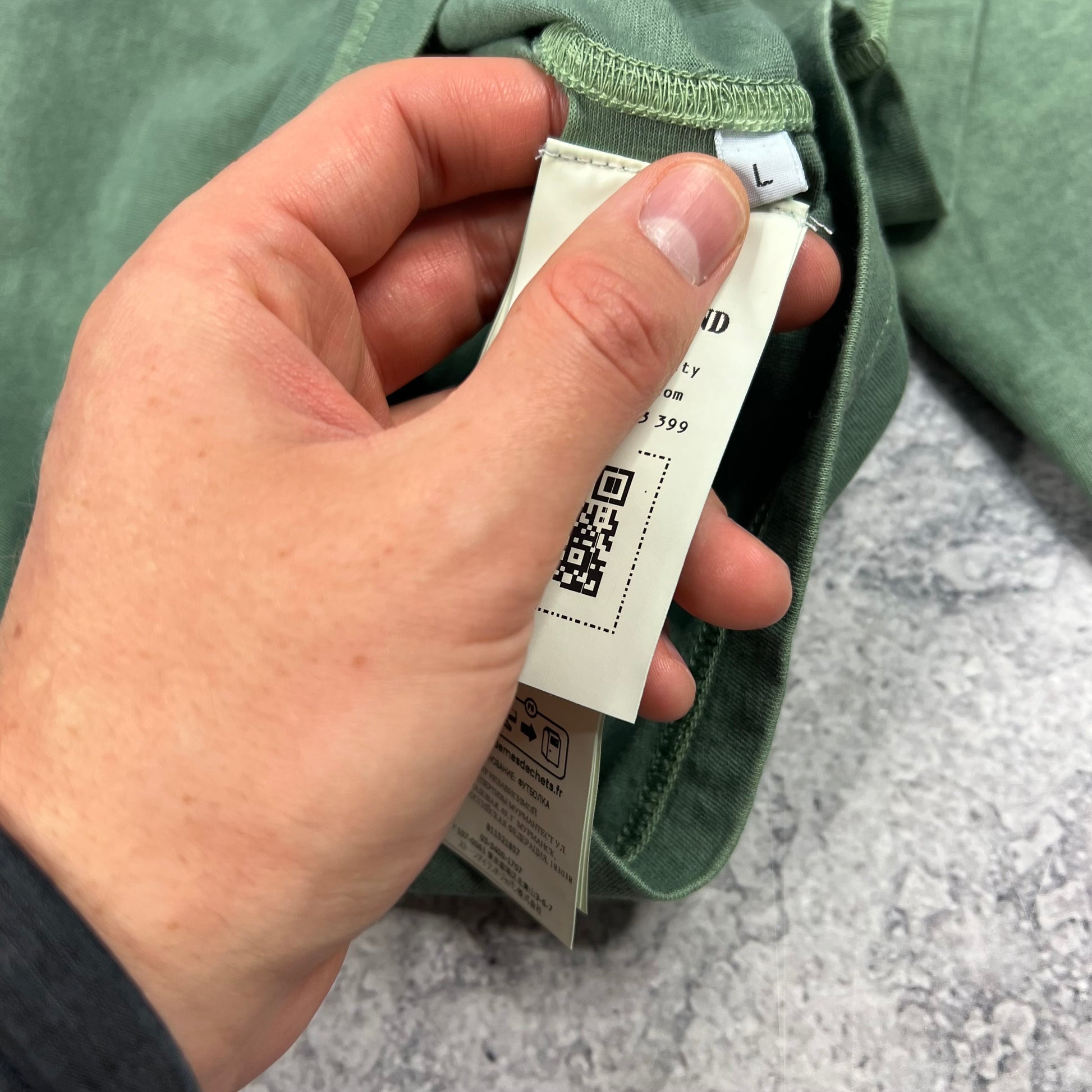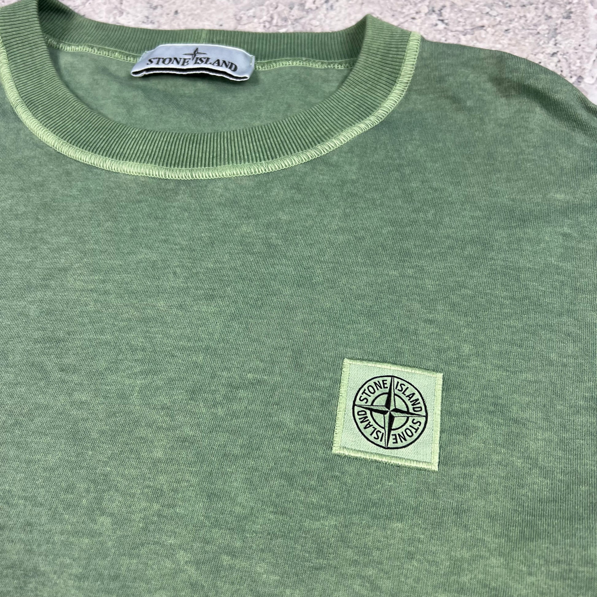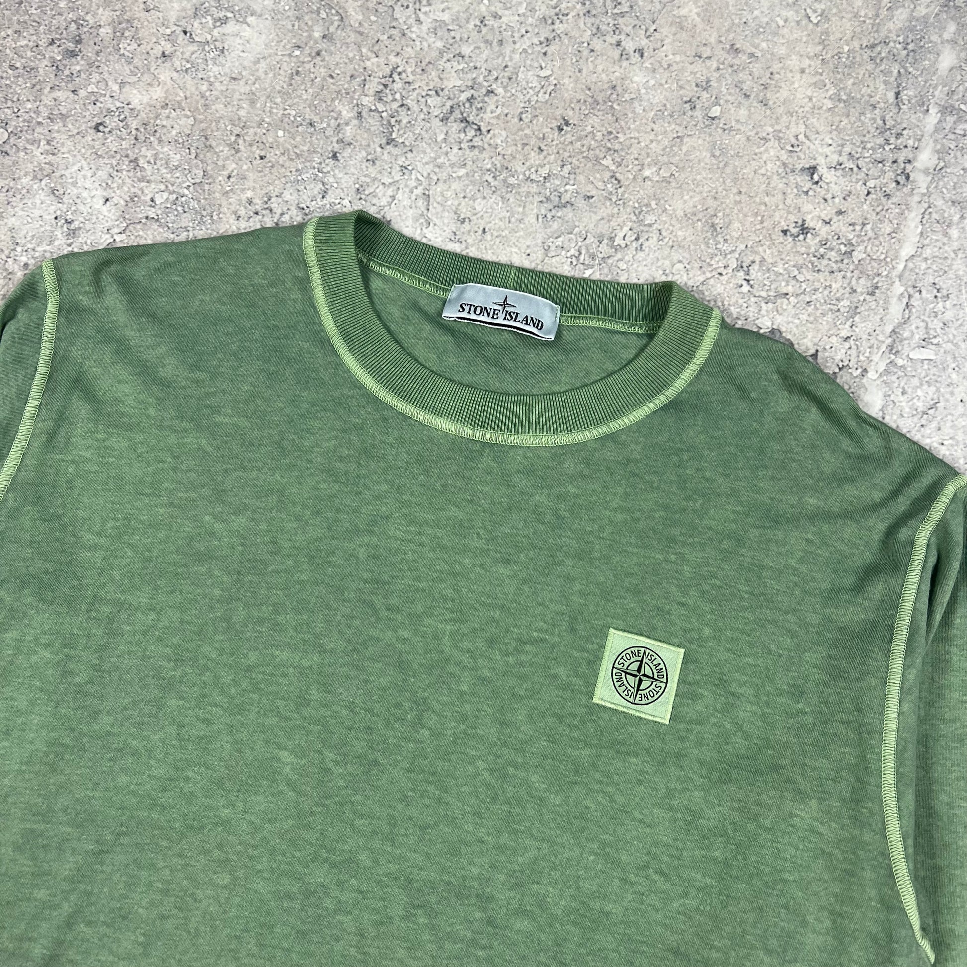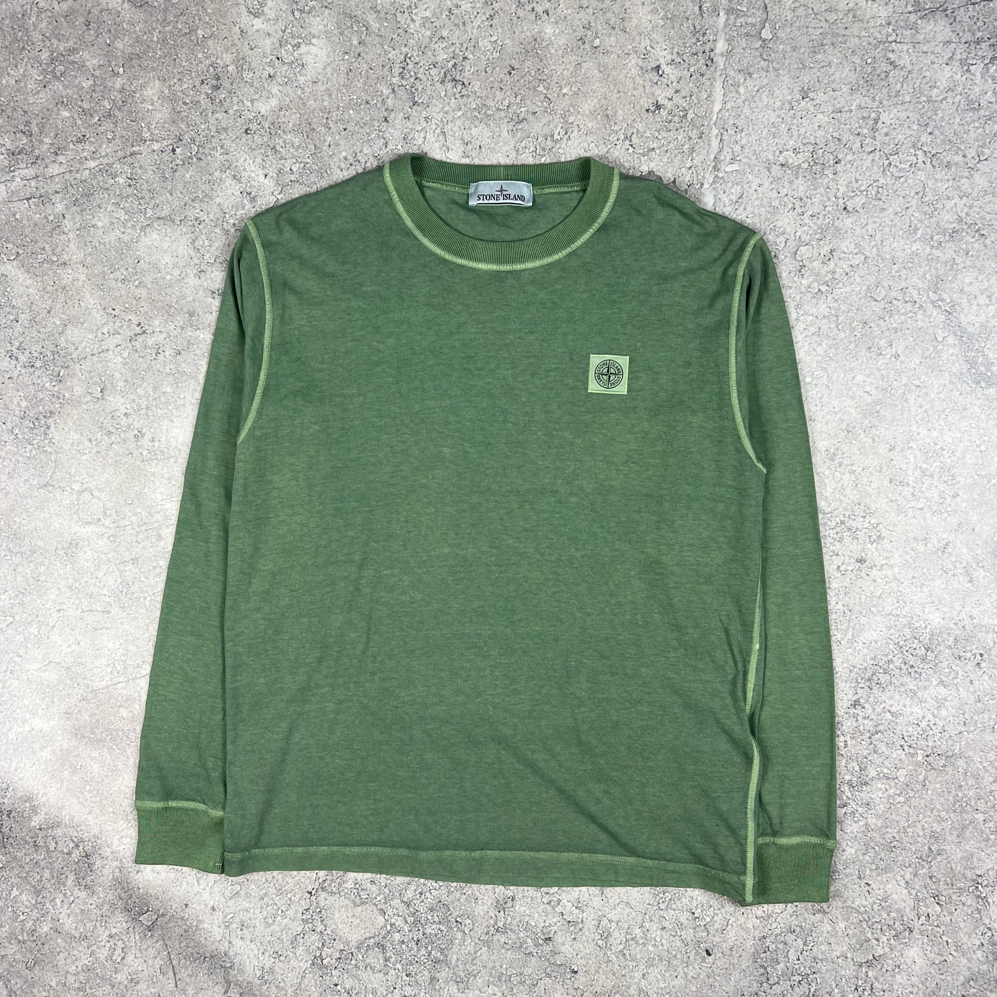 Stone Island Green Garment Dyed Long Sleeve T-Shirt Large 21.5”