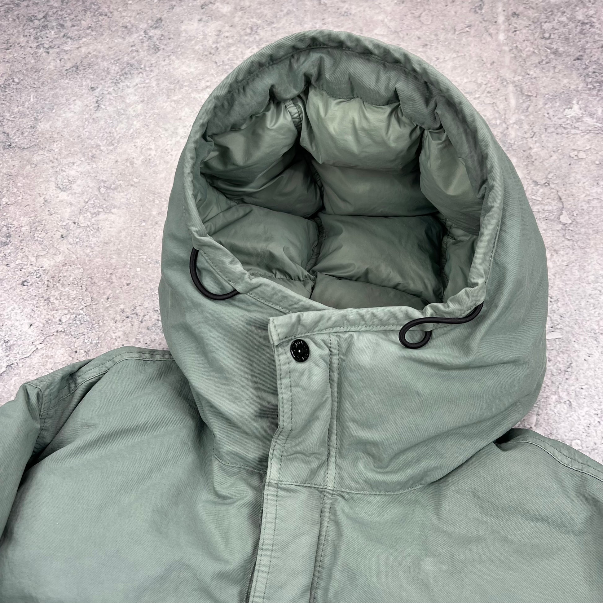 Stone Island Green Opaque Nylon Twill Down Jacket Large 26.5”