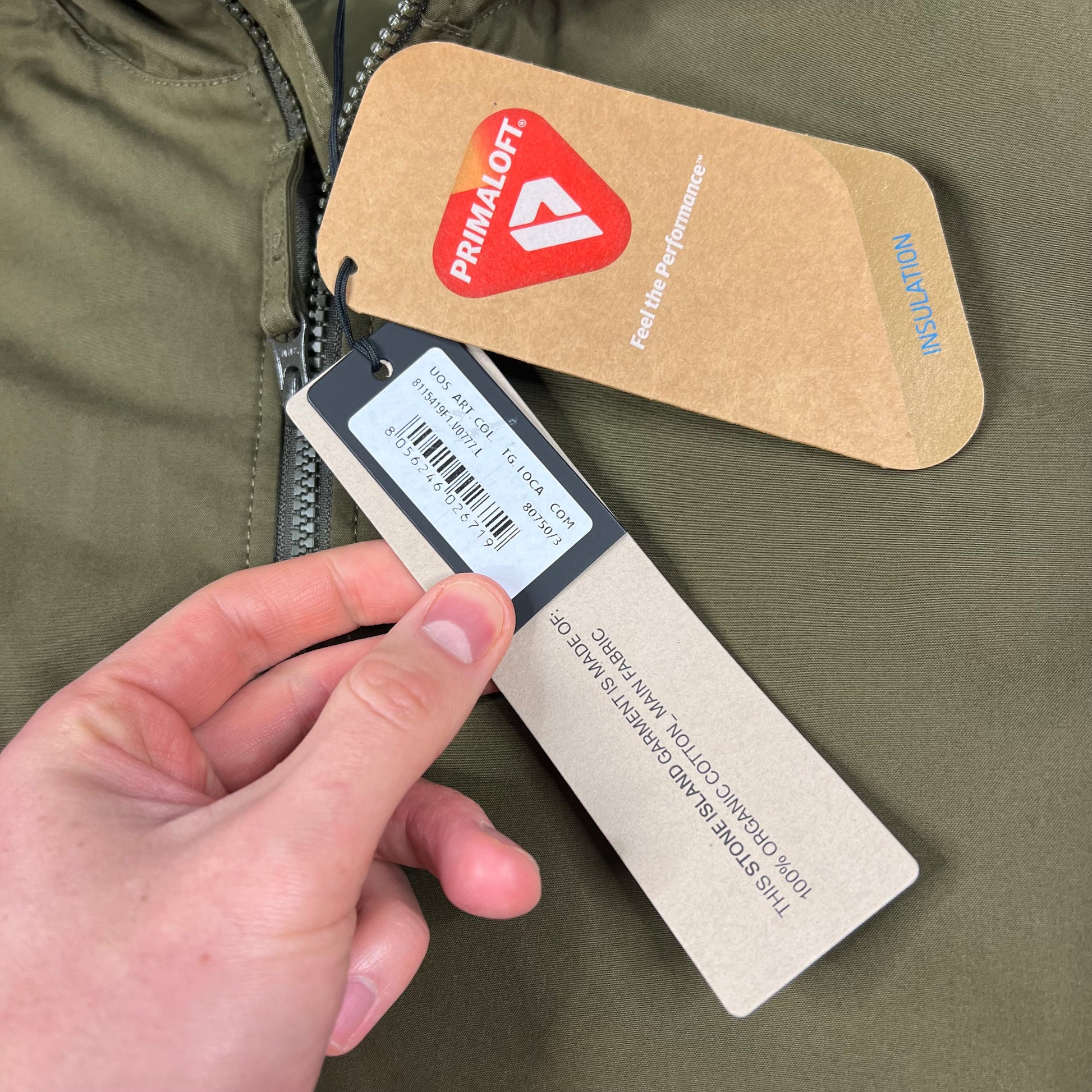 Stone Island Khaki Ghost O-Ventile Primaloft Jacket Large 24” BNWT