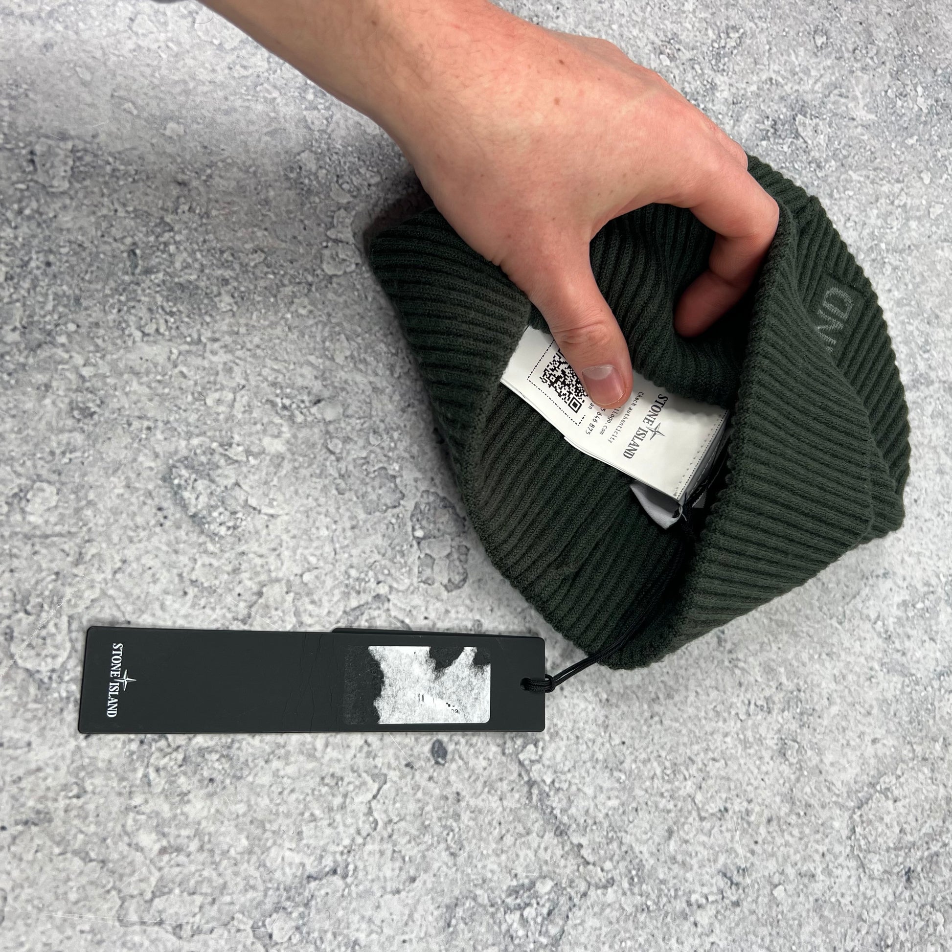 Stone Island Khaki Reflective Logo Beanie BNWT