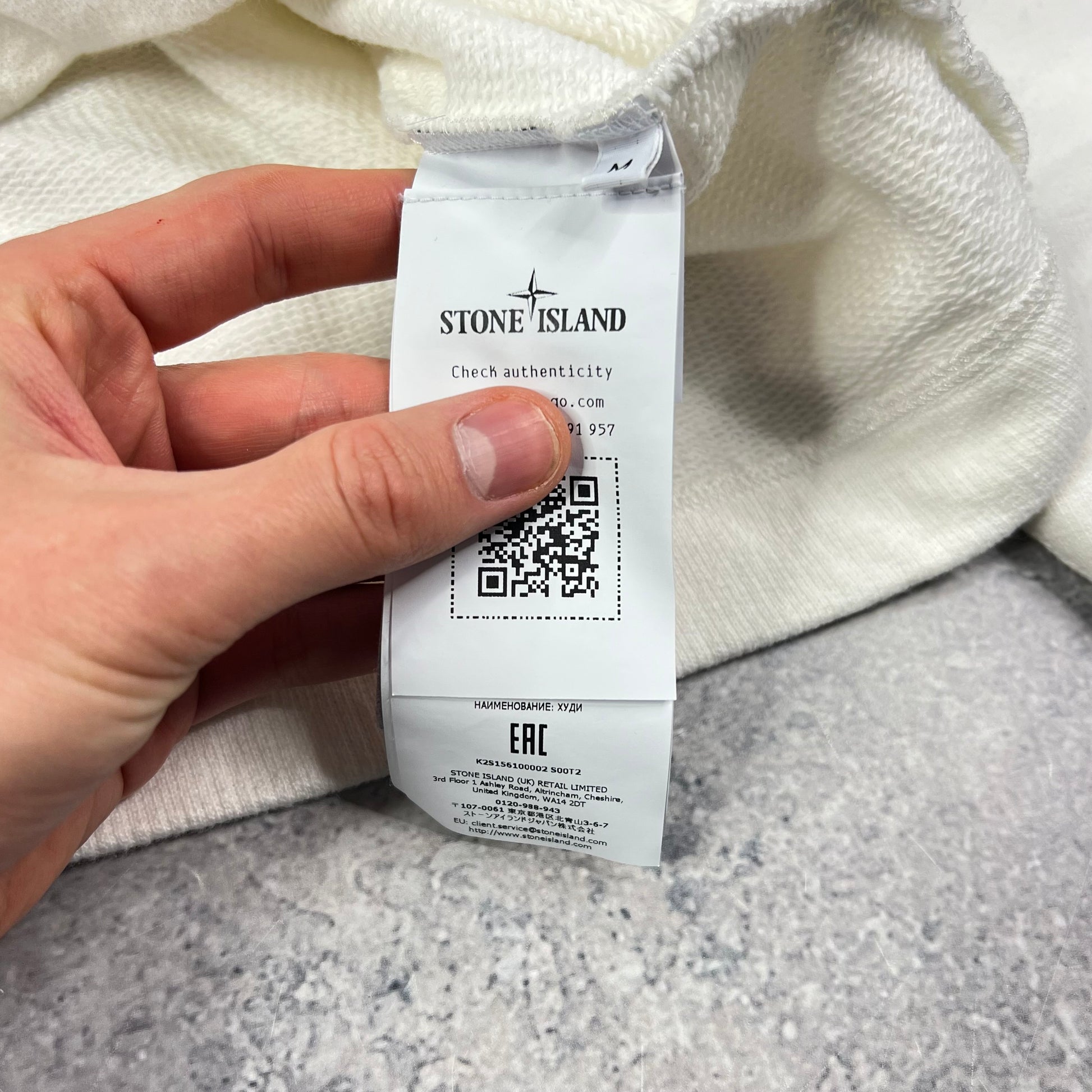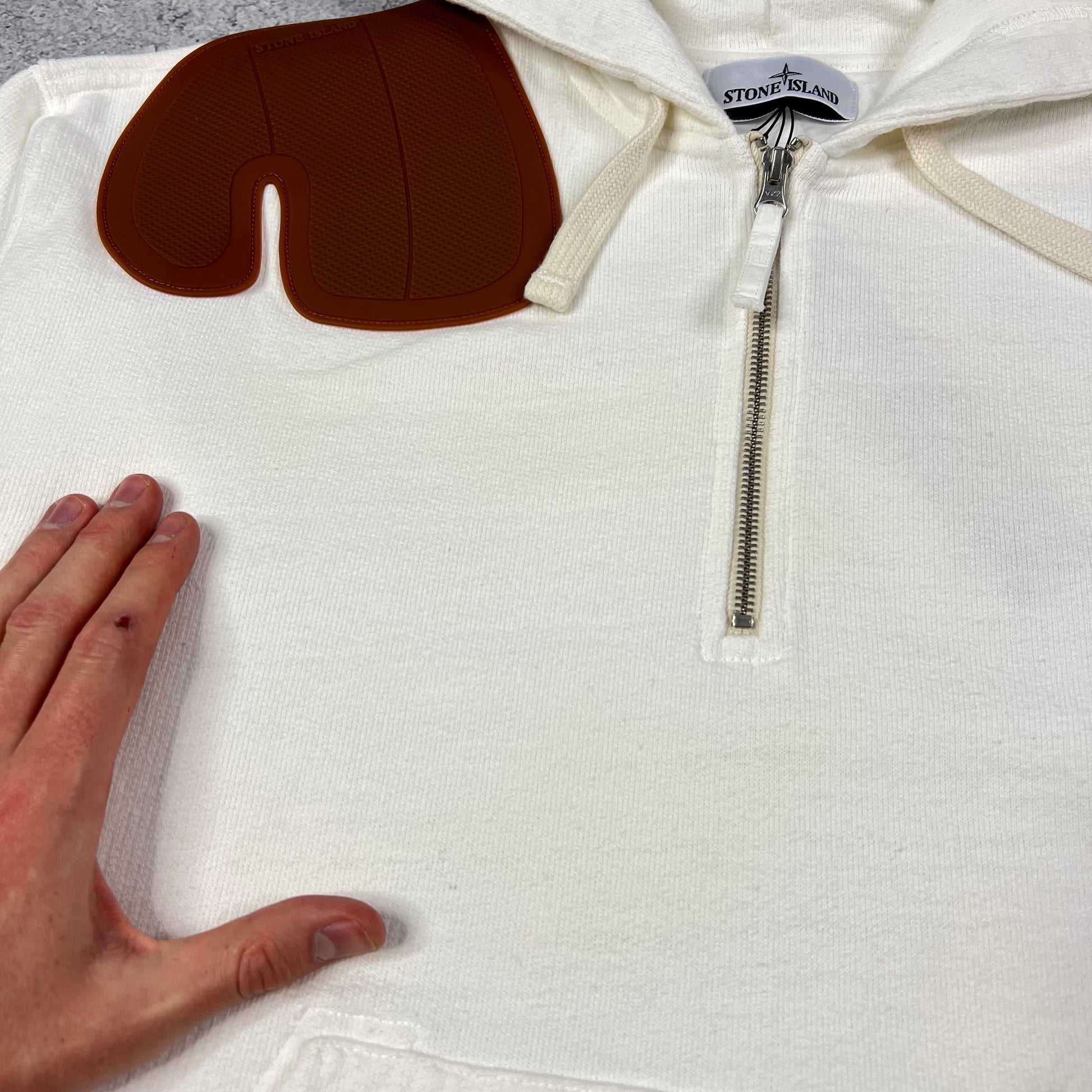 Stone Island White Raw Beauty Plate Hoodie Medium 22.5”